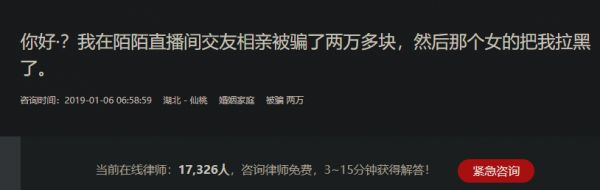 这其中,既有一线白领为世纪佳缘支付8万红娘服务费,却等来缘分金钱一场空,2017年苏享茂翟欣欣事件证明传统在线婚介机构的高价红娘并不靠谱;也有抖音、陌陌等“线上红娘+在线相亲”的模式中,花5块钱就能安排一场线上相亲,成不成功另说,图个喜庆。一位老大哥在陌陌在线相亲被骗2万转而寻求法律援助,从在线相亲到在线普法无缝衔接,为中国反相亲交友诈骗事业献上了自己一份力量。