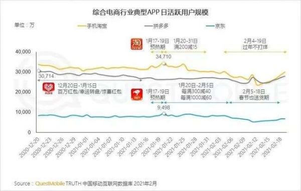 据中国移动互联网数据库《综合电商行业典型APP日活用户规模》显示,近三个月内,尽管京东、淘宝、拼多多等电商公司通过晚会冠名、巨额补贴等多种手段提升用户黏度,但增长十分有限。综合电商在2020年面临流量焦虑之后,2021年面临的新问题将是社交关系焦虑。