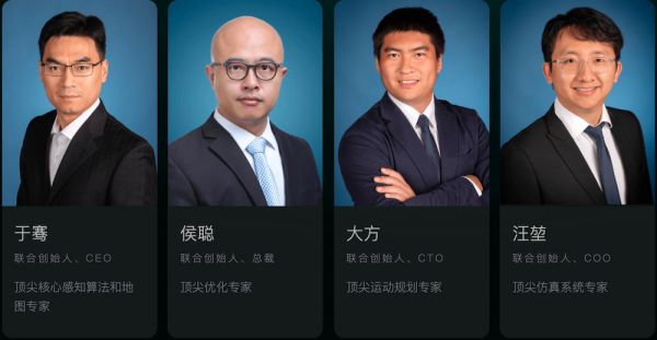 公司联合创始人、总裁侯聪曾在Waymo的感知团队工作,负责感知系统整体开发与优化。联合创始人、CTO大方擅长无人车路径规划和决策,曾供职于Waymo的运动规划团队,负责运动规划关键模块。