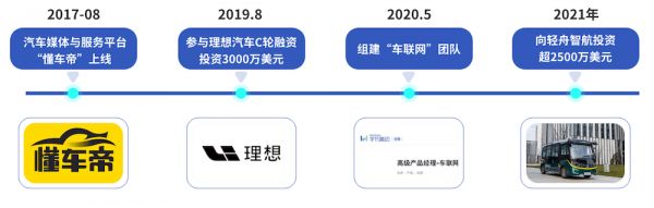 2019年,字节跳动投资3000万美元,参与新造车头部玩家理想汽车的C轮融资。然后在2020年的5月,字节跳动正式组建“车联网”团队。主要由“锤子科技”团队负责,据称将打造自己的车载信息娱乐系统方案。