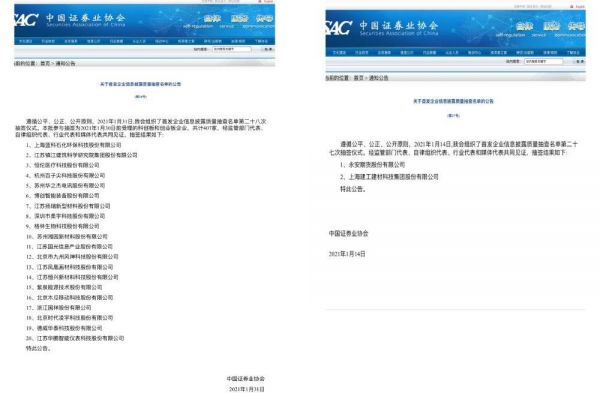 ▲关于首发企业信息披露质量抽查名单的公告。左-第28号公告,右-第27号公告