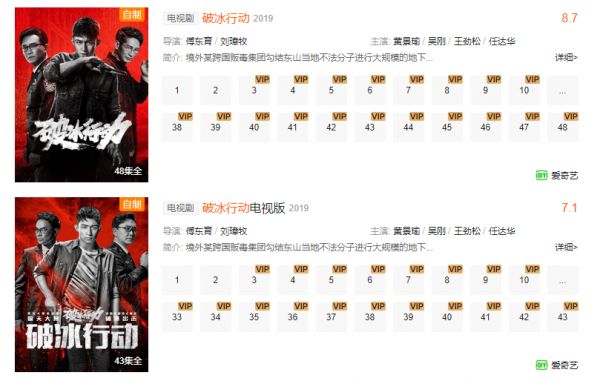 其中,《破冰行动》更完成了一波“反向”输出,视频平台释出全集后,又在央视八套播出。为了“照顾”电视用户,《破冰行动》甚至剪辑了两个版本:爱奇艺版更烧脑,而央视版更“合家欢”,适合在电视上观看。