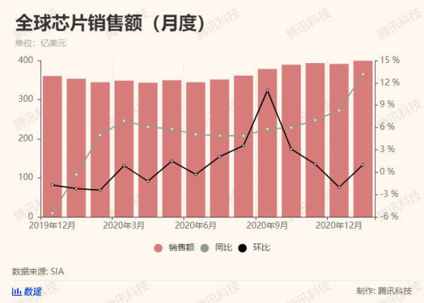 其次,对疫情催生的消费电子需求准备不足。美国半导体产业协会(SIA)数据显示,在2020年上半年,全球芯片有四个月的销售额是环比下滑的,另外两个月也只是最高1.5%的增幅。可见,因为疫情的原因,全球对芯片的需求保持在比较低迷的水平。