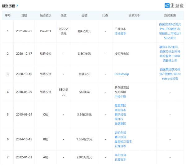 △微医融资史