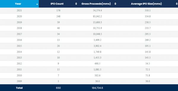 ▲美股SPAC上市的数量、总募资额、平均募资额(2009-2021年2月24日)