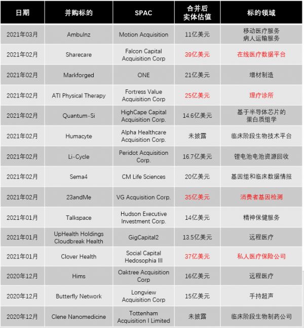 ▲近期医疗行业的SPAC合并(制图:医趋势)