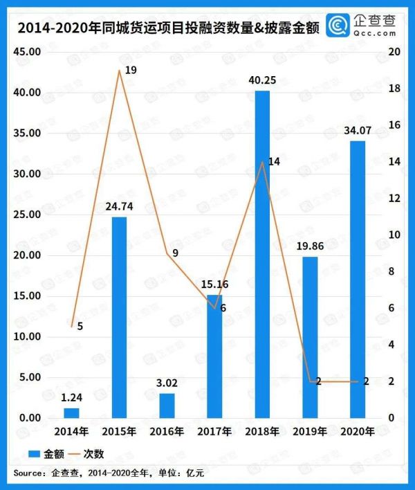 从数据上来看,2014年前后,在滴滴网约车崛起的同时,国内掀起“O2O浪潮”,创业者盯上了货运市场。2015年同城货运项目共获得融资19次,2016年、2017年和2018年分别发生融资事件次数9次、6次和14次。货拉拉、58速运、一号货车、1号货的等项目相继上线,正式拉开“互联网+货运”的混战。