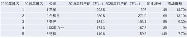 但8寸晶圆的产能却远跟不上需求增长的速度,甚至8寸晶圆厂在逐年关闭。在中国大陆来说,芯片项目在技术先进性上的导向以及盈利,很多项目在落地时就瞄准了12寸产线,还有一些8寸产线转成12寸产线。根据第三方数据机构IC Insights统计,三星电子2020年底月产能为306.0万片8寸晶圆,位居第一大厂,其次为台积电。