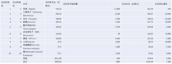 除了8寸晶圆厂的数量减少,动荡的政治环境也是造成供需紧张的原因,一些大型公司加大囤芯力度,备货量大幅增加。这使得芯片需求市场更加紧张。手机厂商在2020年芯片采购支出上的金额上涨,根据第三方市场调研机构Gartner的数据,2020年全球芯片采购支出达4498亿美元,较2019年增长7.3%。支出金额排名前五的厂商分别是苹果、三星电子、华为、联想、戴尔科技。华为公司在2020年的芯片采购支出下降了23.5%。
