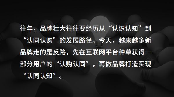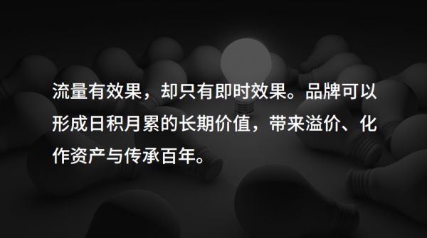 4、种草营销难以积累品牌资产。烟花很绚丽,但照亮夜空的是灯光。流量有效果,却只有即时效果。品牌可以形成日积月累的长期价值,带来溢价、化作资产与传承百年。“怕上火喝王老吉”、“国酒茅台”、“农夫山泉有点甜”,许许多多经典品牌语都已成为后来者难以逾越的壁垒,成为不可估量的品牌资产,成为消费者内心不假思索的选择。种草营销虽然每一次都可能有些效果,但却注定是临时的、短暂的、即时的,难以持续。