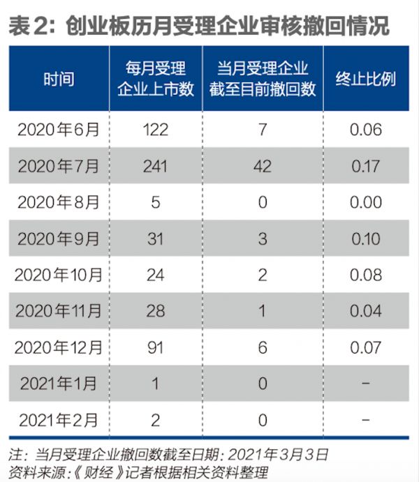 截至3月3日,创业板7月受理的241家企业中,有42家已终止审核,占创业板总撤回比例较高。