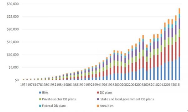 美国第三支柱IRA资产规模年复合增速:23%,