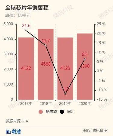 最终,新冠疫情导致电子产品需求大增,进而推动2020年全球半导体销售额整体增长6.5%,达到4390亿美元。在疫情开始的2020年上半年,这一情况是无法预测的。