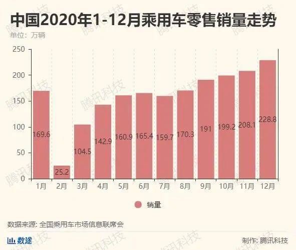 全国乘用车市场信息联席会数据显示,2020年全年,中国汽车市场零售累计达到1928.8万辆,同比增速-6.8%,高于年初行业预测-10%的增速。