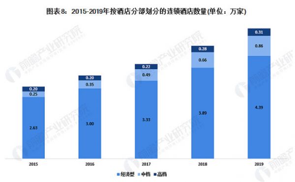 经济型酒店构成了中国连锁酒店行业中最大的组成部分,2019年占中国连锁酒店的酒店及酒店客房总数的约79%及53%。在连锁酒店转向侧重消费升级的推动下,中档酒店分部自2015年至2019年呈现显着增长,就酒店客房数量而言,复合年增长率为34.3%。
