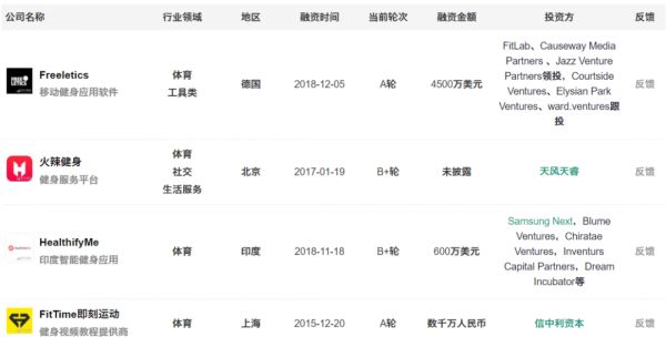 图:线上居家健身相关企业融资进展(来源:烯牛数据)