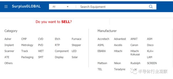 从公司官网我们了解到,SurplusGLOBAL的设备种类丰富,有来自十几家国际知名半导体设备厂商的多种设备,例如ASML、应用材料、泛林、佳能、爱德万测试以及ASM等国际半导体设备厂商,SurplusGLOBAL销售的设备主要有光刻机、PVD、CVD、离子注入以及ATE、RTP等。