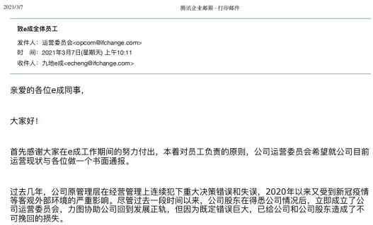 近期,累计融资上亿美金,主打“AI+HR”概念的e成科技近期就遇到破产危机。3月7日,e成科技发布内部信,宣布公司面临极大的经营困难,3月份所有员工薪酬都不能发,成立“公司运营委员会”接管公司,并明示公司已经进入生死存亡之际。