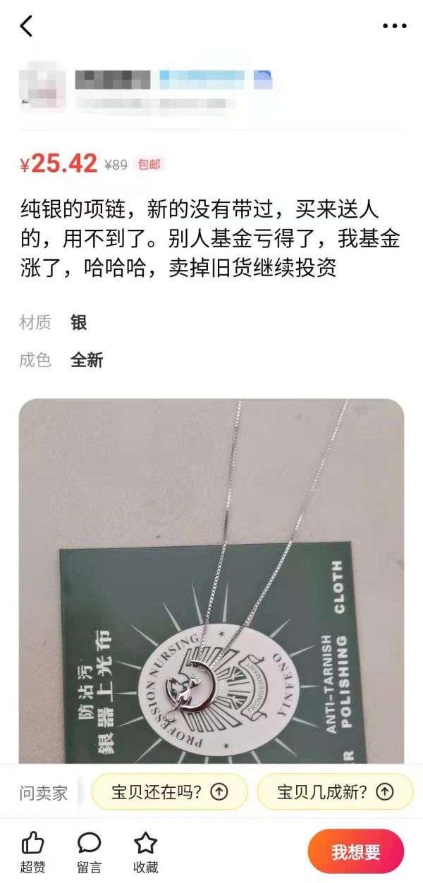 有网友调侃道:买基金和挂闲鱼,这两个此前看起来完全没有交集的行为,竟然在最近全都变成了“绿色消费”。还有的网友看到这些信息后表示,可以去闲鱼抄底了。