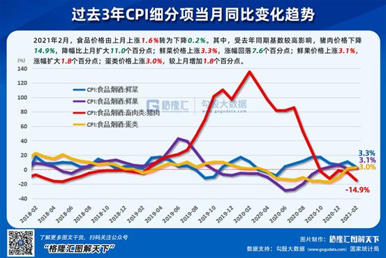 近日,国家统计局公布数据显示,2月CPI同比下降0.2%,前值下降0.3%;PPI同比增长1.7%,前值增长0.3%。