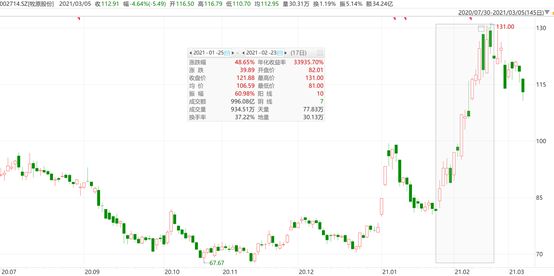 牧原股份:1-2月份,公司销售生猪488.7万头(去年同期为139万头),销售收入122.81亿元,同比增165%;同期,商品猪销售均价26.95元/公斤,比2020年12月份下降10.61%。