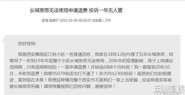 事实上不仅是郑州一地,针对长城宽带“缴费容易维权难”的投诉早已遍及大江南北,从陕西到海南,消费者投诉的内容也基本都大同小异。例如“已经一个多月用不了了,每次打电话给客服,都说等会儿让师傅给修,但至今都没见到人影”、以及“长城宽带无法使用,我申请退费到现在已经超过一年时间了,还没退下来”等内容,在网路中也很容易找到。