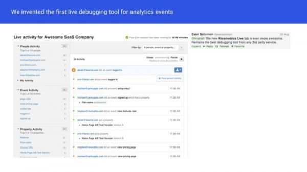 利用分析工具来实现和调试,对新数据的跟踪可能需要几周时间,这就是为什么我们构建了一个名为“KISSmetrics Live”的调试器,为开发人员实时显示传送到工具中的实际数据。