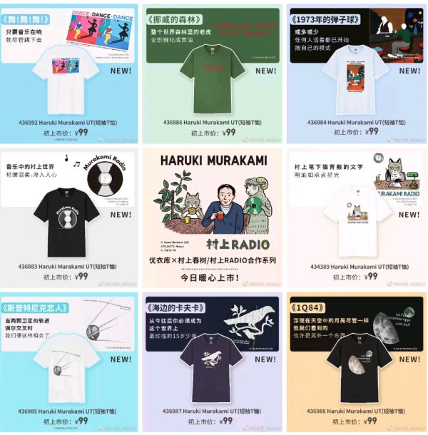 这次联名是优衣库联合作家村上春树,把“村上春树”放到了T恤上。