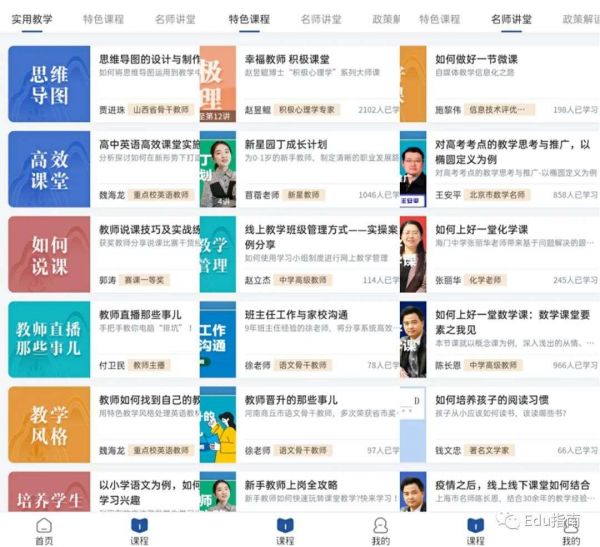 更具体来看不倦课堂的课程线,包括实用教学,以工具、备课技巧等为主;其他还有特色课程,名师课堂,政策解读。