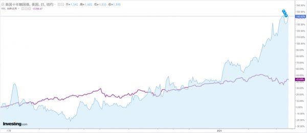 另外,通胀抬头,加息预期就会抬头,因为美联储其中目标就是稳通胀。因为美国经济还没完全复苏,所以要加息也是未来,因此长期国债收益率上涨也反应了美联储未来加息的预期。