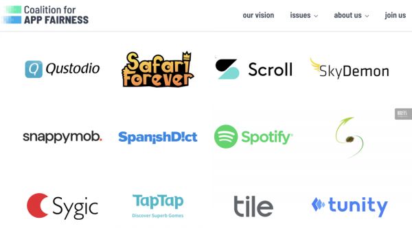 部分“应用程序公平联盟”成员,其中也包括中国公司