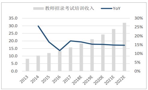 彼时,诸多K12课外培训机构对教师资格证这一点并未做出严格规范,导致大量“无证上岗”教师出现。花旗分析师Mark Li等人曾因此下调中国教辅板块评级,并表示新东方、好未来近50%的K12教师可能都没有资格证。政策下发后,许多较大的线上培训机构都开始对旗下教师进行统一考试要求,这催生了一批主打教师培训业务的新机构,例如悦客、学天等。此外,包括中公、华图、粉笔公考在内的一批职教选手也涌进了这条赛道。