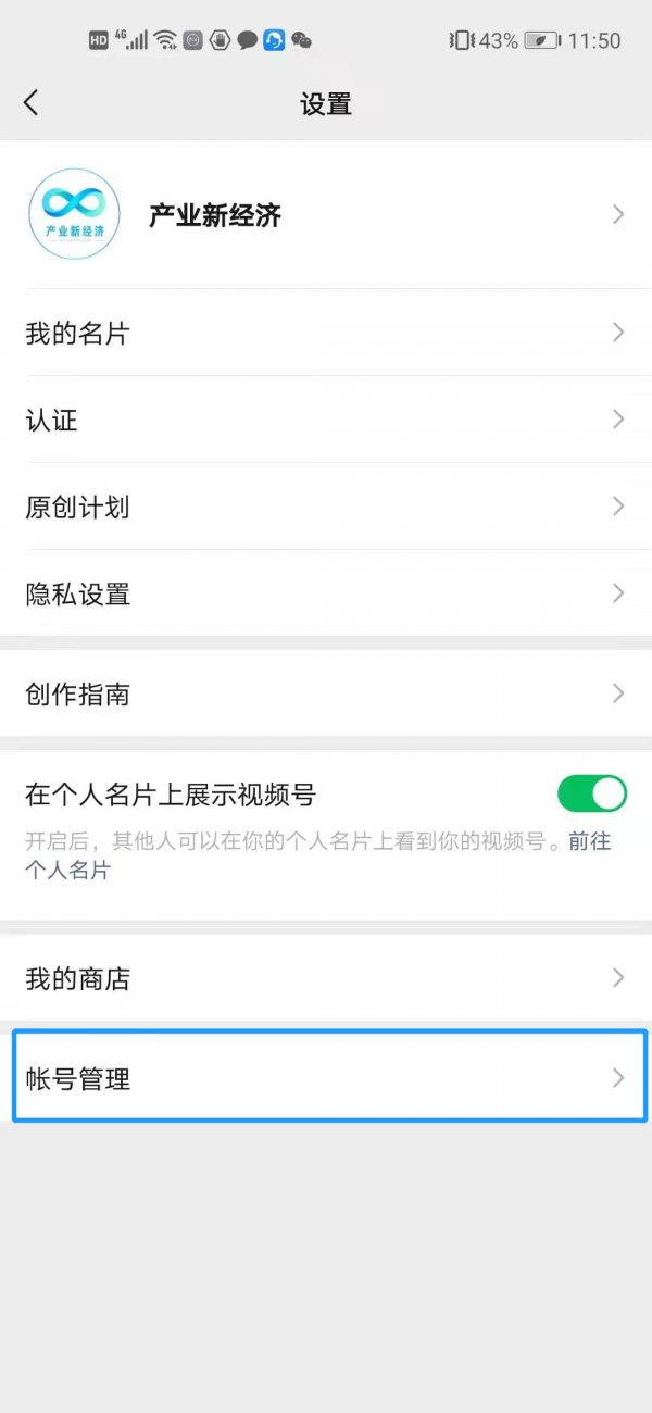 在视频号设置页面,可以看到新增的“帐号管理”入口。