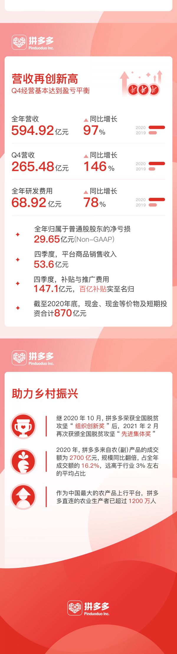 北京时间3月17日,拼多多发布2020年第四季度及全年财报: