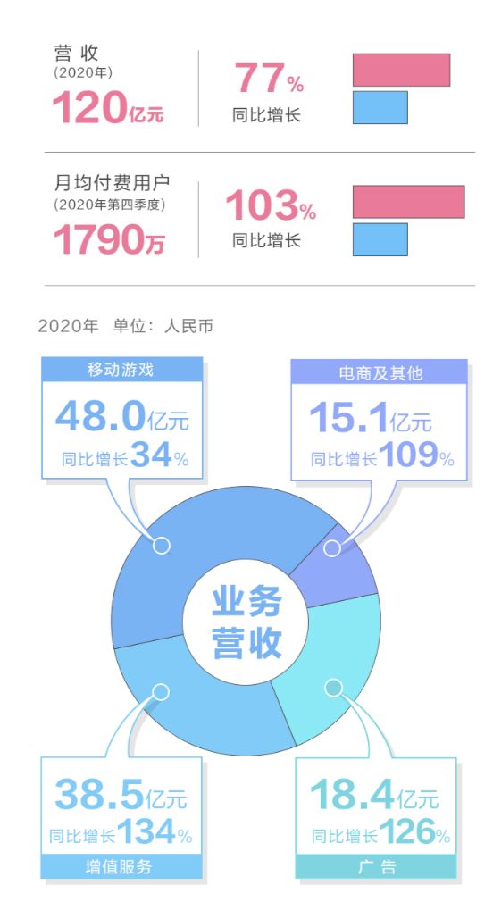 2020年全年,B站营收120亿元,同比增长77%;调整后净亏损26亿元,去年同期亏损11亿元。