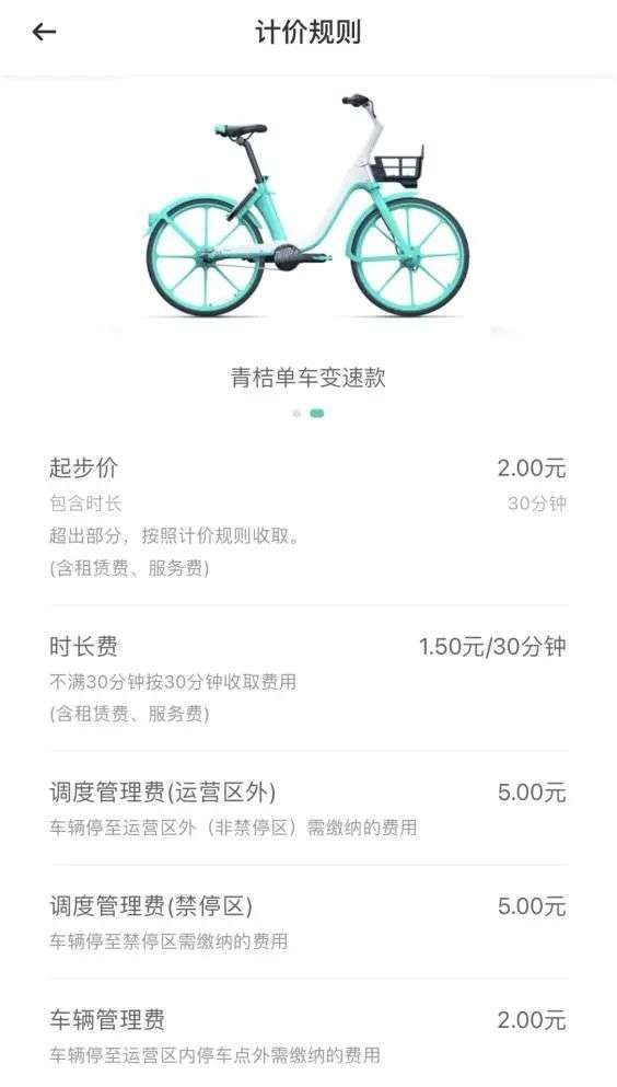 共享单车涨价了?《IT时报》记者发现,与此前1.5元/半小时的价格相比,青桔的价格不变,青桔经典款1.5元/半小时,变速款2元/半小时,之后按1.5元/半小时计算。