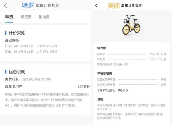 而哈啰、美团单车的计价规则均有调整。