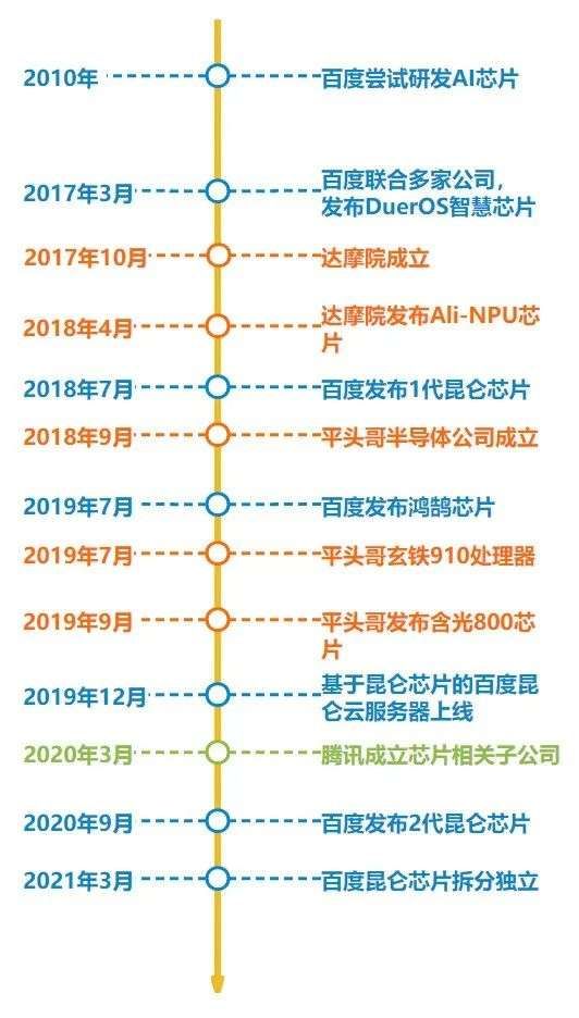 在字节跳动之前,BAT三巨头早已下场造芯。其中,百度的行动最早。