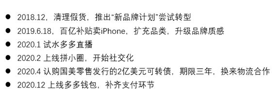 一条路是,从阿里和京东那边抢2亿新中产。另一条是,升级平台。不止卖农产品、日用消费品。不止卖便宜货。也不止是购物平台。