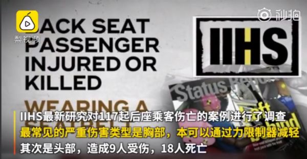 4月25日,美国公路安全保险协会IIHS发布最新研究:在发生正面撞击时,汽车后座可能比前座更危险。IIHS指出,前排座位的乘客拥有各种各样的安全系统,而后排座位上有安全带和侧气囊,没有前置气囊。该研究对117起后座乘客伤亡严重的案例分析发现,如果后座有类似前座的保护措施,这些严重伤害本可以避免。
