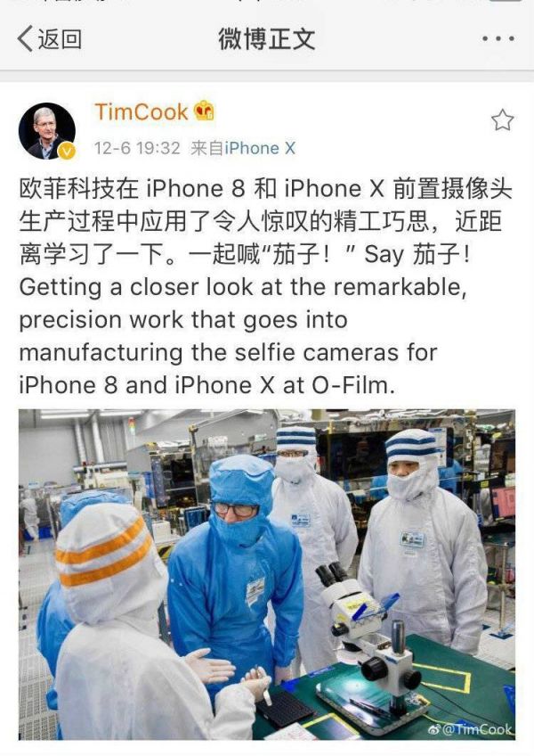 实际上从 2019 年起,这家苹果主要的供应链公司就屡次传出会被苹果踢出局的消息,而就在 2017 年,欧菲光还是库克中国行特别到访,还发微博点赞的供应链企业,短短几年就变脸,当真是“小甜甜变牛夫人”。