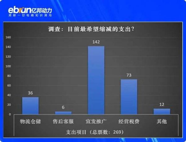 在亿邦的调查中,商家目前认为负担最重,需要削减的支出还是宣发推广成本。而相对来说,认为经营税费最难以承受的只占27%。不过,在电商税全面实施之后,这将很可能改变。