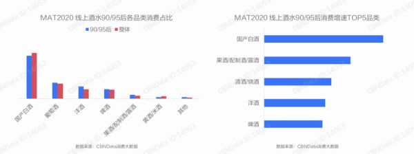 从品类上来看,白酒、葡萄酒和洋酒是年轻人线上消费酒水单的前三位品类,其中,白酒的增速也最高。
