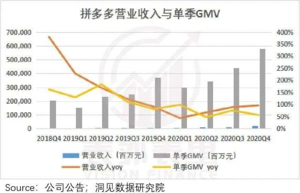 不过我们发现,在一溜亮眼数据背后,尽管拼多多2020Q4单季GMV同比增速依然达到56.6%,但已从“学神速度”变成“学霸速度”。