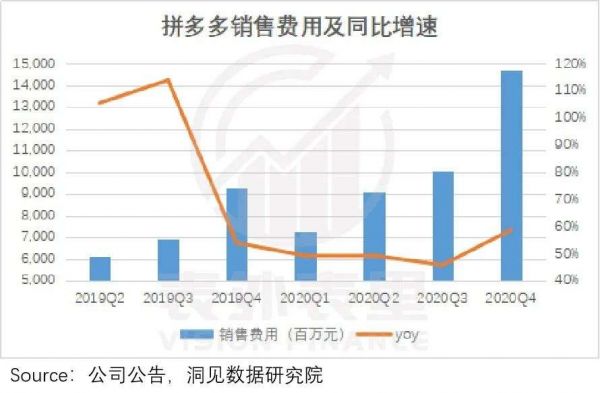 2020Q4,拼多多的营销费用支出继续增加,且增速相比Q3有较大上升。