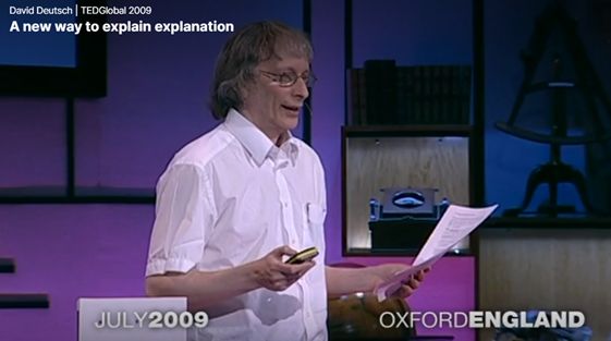 [4]Deutsch, David (October 2009). A new way to explain explanation (https://www.ted.com/talks/david_deutsch_a_new_way_to_explain_explanation). TED talk. Also available from YouTube (https://www.youtube.com/watch?v=folTvNDL08A).