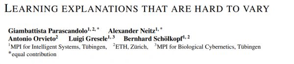 [3] Giambattista Parascandolo, Alexander Neitz, Antonio Orvieto, Luigi Gresele, & Bernhard Schölkopf. (2020). Learning explanations that are hard to vary.