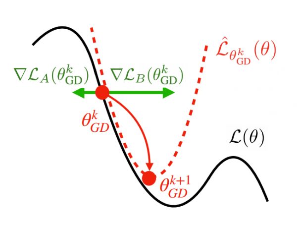 梯度聚合方式。如果在训练的时候,信号是独立学习的(batch),那么这些信号的聚合方式就很重要了,合理的聚合方式才能保证所有信息不被丢失。如前文(图 4)所示,我们常用的 average 在很多情况下会丢失重要的信息,比如图 4 中向左的信息就被丢失了,如果更多的 batch 希望向左,但是值却很小,那么 average 下还是向右,但是更 general 的方案显然是向左。