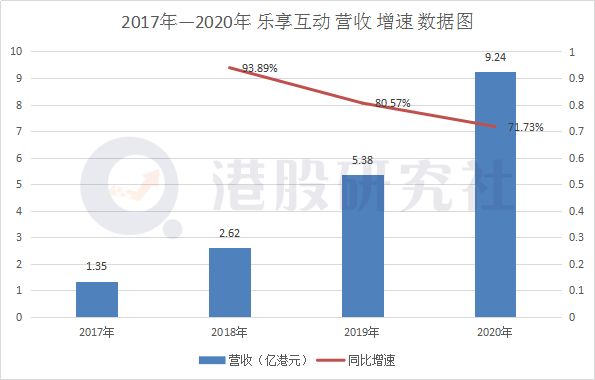 财报数据显示,2020年乐享互动营收达9.24亿港元,同比2019年增长71.73%,营收体量创历史新高。