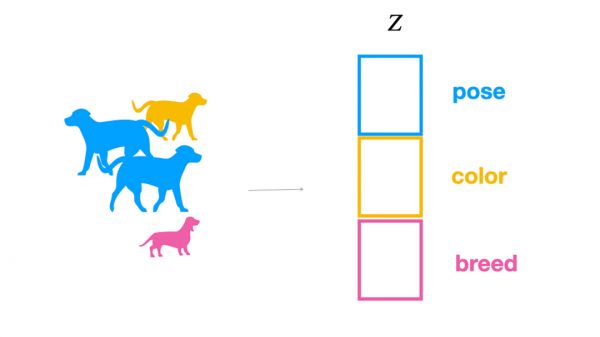 例如,解纠缠可能将狗图像的数据集编码为姿态、颜色和品种子空间。